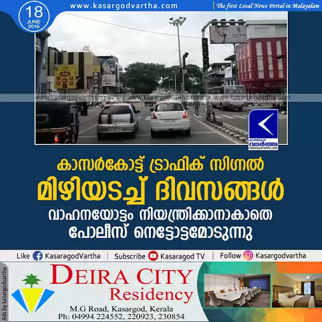 കാസര്കോട്ട് ട്രാഫിക് സിഗ്നല് മിഴിയടച്ച് ദിവസങ്ങള്; വാഹനയോട്ടം നിയന്ത്രിക്കാനാകാതെ പോലീസ് നെട്ടോട്ടമോടുന്നു
