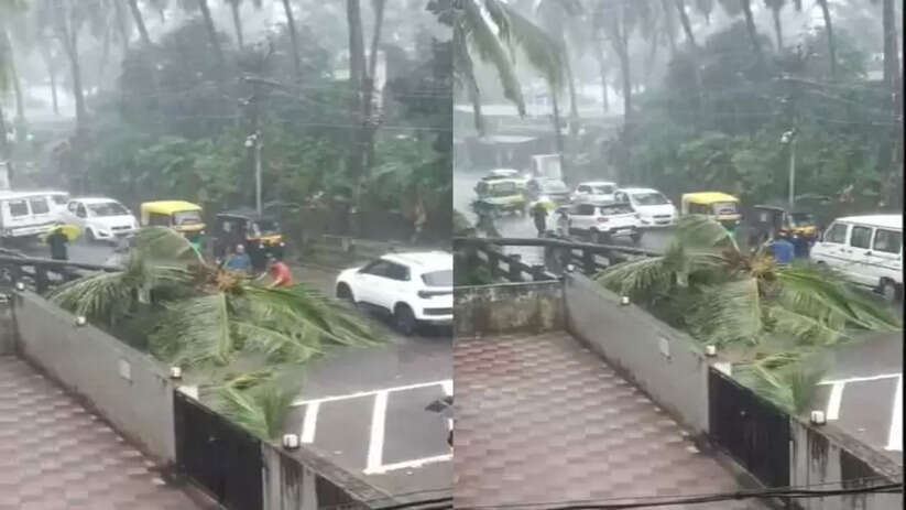 Heavy Rain | നിരവധി വാഹനങ്ങൾ ഓടിക്കൊണ്ടിരിക്കെ റോഡിലേക്ക് തെങ്ങ് കടപുഴകി വീണു; ദുരന്തം ഒഴിവായത് തലനാരിഴയ്ക്ക്; വീഡിയോ