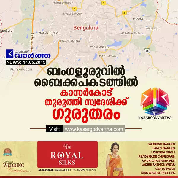 ബംഗളൂരുവില്‍ ബൈക്കപകടത്തില്‍ കാസര്‍കോട് തുരുത്തി സ്വദേശിക്ക് ഗുരുതരം