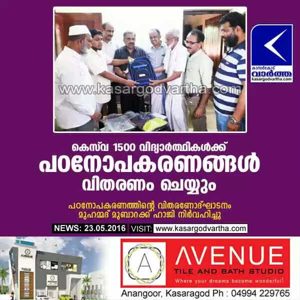 കാസര്കോട്: (www.kasargodvartha.com 23.05.2016) സൗദി തലസ്ഥാനമായ റിയാദില് പ്രവര്ത്തിക്കുന്ന കാസര്കോടന് കൂട്ടായ്മയായ കെസ്വ എന്ന ജീവകാരുണ്യ സംഘടന കാസര്കോട്ടെ വിവിധ സ്കൂളുകളിലെ പാവപ്പെട്ട 1500 വിദ്യാര്ത്ഥികള്ക്ക് പഠനോപകരണങ്ങള് വിതരണം ചെയ്യും. ഇതിന്റെ ഉദ്ഘാടനം മുഹമ്മദ് മുബാറക്ക് ഹാജി നിര്വഹിച്ചു. കാസര്കോട് ഏരിയ പ്രസിഡണ്ട് സി എല് ഹമീദ് അധ്യക്ഷത വഹിച്ചു.