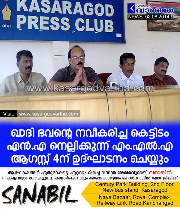 കാസര്‍കോട്: (www.kasargodvartha.com 28.07.2014) കണ്ണൂര്‍ സര്‍വോദയ സംഘത്തിന് കീഴില്‍ കാസര്‍കോട് റെയില്‍വേ സ്‌റ്റേഷന്‍ റോഡില്‍ പ്രവര്‍ത്തിക്കുന്ന ഖാദി ഭവന്റെ നവീകരിച്ച കെട്ടിടം തിങ്കളാഴ്ച പകല്‍ 11ന് എന്‍.എ നെല്ലിക്കുന്ന് എം.എല്‍.എ ഉദ്ഘാടനം ചെയ്യും.