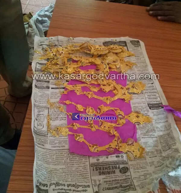തിങ്കളാഴ്ച രാവിലെ 11.30 മണിയോടെ ട്രെയിന് കാസര്കോട്ട് എത്തിയപ്പോഴാണ് സ്വര്ണം പിടികൂടിയത്. ടി.ടി.ഇക്ക് സംശയം തോന്നിയതിന്റെ അടിസ്ഥാനത്തില് ആര്.പി.എഫിനെ വിവരം അറിയിക്കുകയായിരുന്നു. ആര്.പി.എഫ്. എ.എസ്.ഐ. എം. രാജന്, സീനിയര് സിവില് പോലീസ് ഓഫീസര് എന്. രാജേഷ് എന്നിവരെത്തി സ്വര്ണം പിടികൂടുകയായിരുന്നു. ലോക്കറ്റടക്കമുള്ളതാണ് സ്വര്ണമാലകള്. നികുതിവെട്ടിച്ച് ജ്വല്ലറികളിലേക്ക് വില്പനയ്ക്കായി കൊണ്ടുവന്നതാണെന്നാണ് സംശയം.