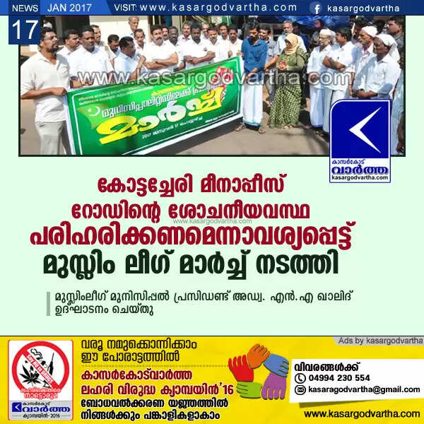 കോട്ടച്ചേരി മീനാപ്പീസ് റോഡിന്റെ ശോചനീയവസ്ഥ പരിഹരിക്കണമെന്നാവശ്യപ്പെട്ട് മുസ്ലിം ലീഗ് മാര്ച്ച് നടത്തി