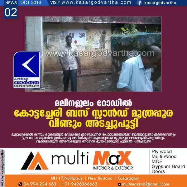Keywords: Kasargod, Kanhangad, kottacheri, Busstand, District, Town, Public toilet, Gents, Fmale, Development,Kottacheri bus stand toilet closed.