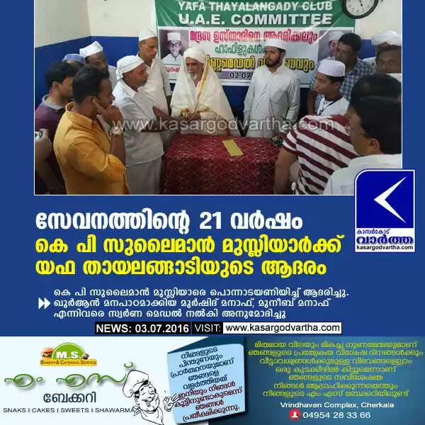 Keywords:  Felicitated, Thayalangadi, kasaragod, Club, Teacher, KP Sulaiman Musliyar, Yafa Thayalangady.