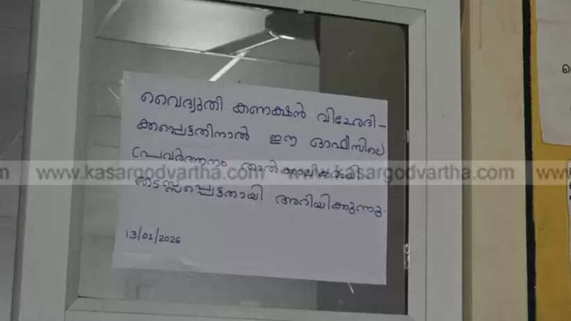 Article Summary: KSEB disconnects power supply to Kasaragod MVD Enforcement Office due to unpaid bills of approx Rs 1 lakh pending for three months.