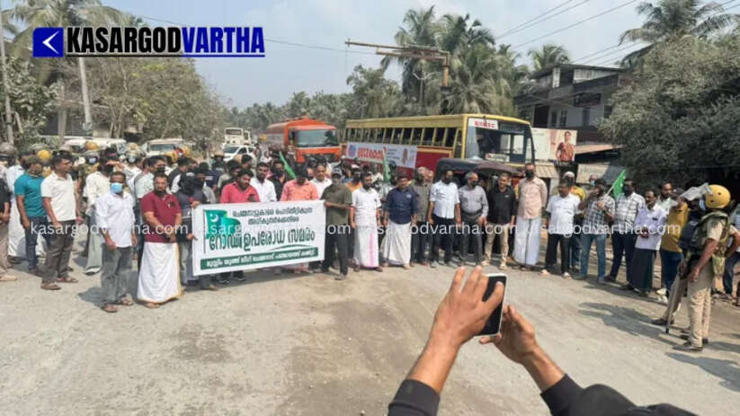 Article Summary: Youth League blocked the Kasaragod-Kanhangad KSTP road protesting against the delay in tarring works and dust issues.