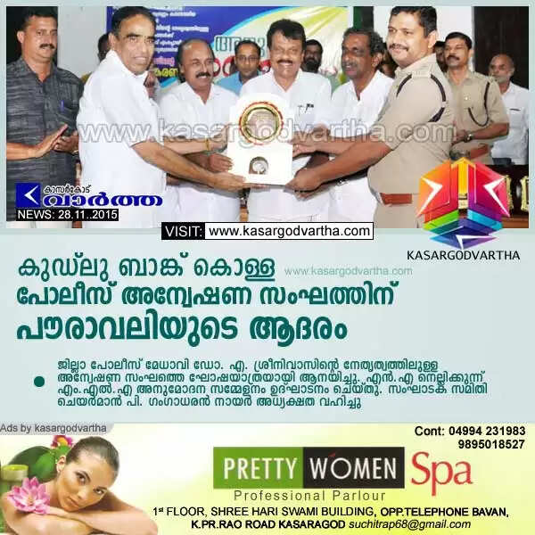 കുഡ്ലു ബാങ്ക് കൊള്ള: പോലീസ് അന്വേഷണ സംഘത്തിന് പൗരാവലിയുടെ ആദരം