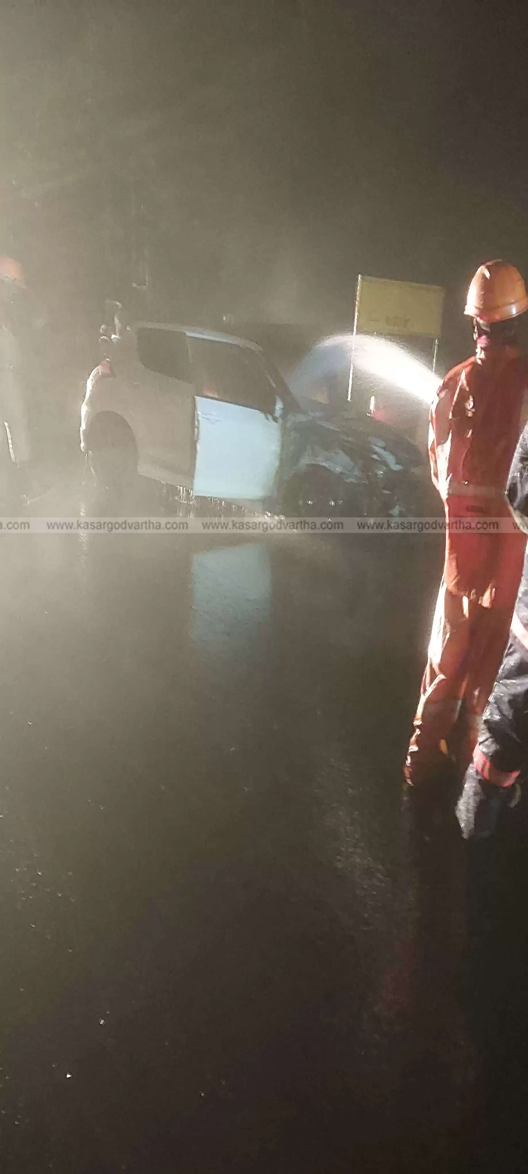 കുമ്പള ദേശീയപാതയിൽ ഓടിക്കൊണ്ടിരുന്ന കാറിന് തീപിടിച്ചു; യാത്രക്കാരൻ രക്ഷപ്പെട്ടു