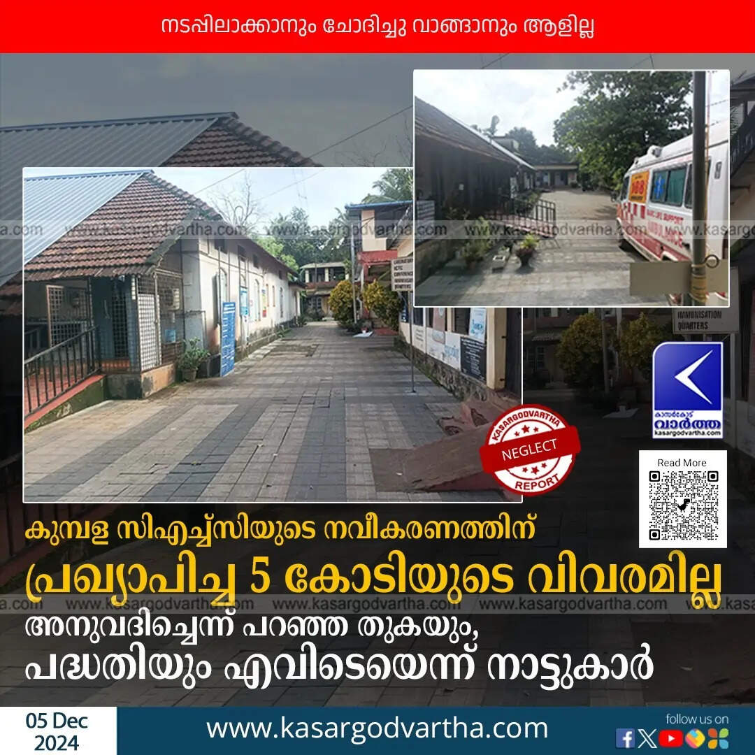 Neglect | കുമ്പള സിഎച്ച്സിയുടെ നവീകരത്തിന് പ്രഖ്യാപിച്ച 5 കോടിയുടെ വിവരമില്ല; അനുവദിച്ചെന്ന് പറഞ്ഞ തുകയും, പദ്ധതിയും എവിടെയെന്ന് നാട്ടുകാര്