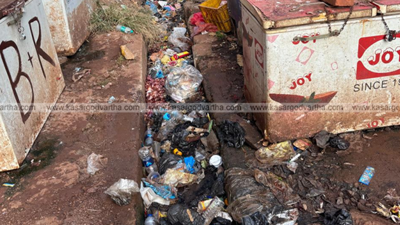 കുമ്പളയിൽ മത്സ്യമാർക്കറ്റ് തുറക്കുന്നത് വൈകുന്നു; ഓവുചാലുകൾ മാലിന്യക്കൂമ്പാരമായി മാറിയതോടെ ദുരിതം