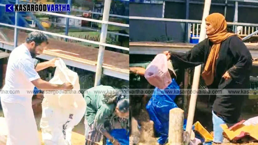 Article Summary: Kumbla Panchayat Vice President and Member participate in a local cleaning drive to remove accumulated waste in Kumbla town.