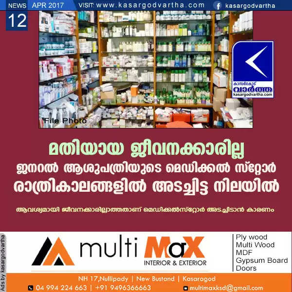 Keywords: Kasaragod, General Hospital, Medical Store, Closes, Night, Worker, Kerala, News, Lack of employees general hospital medical store closed at night.
