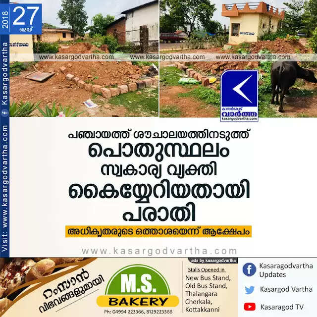 പഞ്ചായത്ത് ശൗചാലയത്തിനടുത്ത് പൊതുസ്ഥലം സ്വകാര്യ വ്യക്തി കൈയ്യേറിയതായി പരാതി; അധികൃതരുടെ ഒത്താശയെന്ന് ആക്ഷേപം