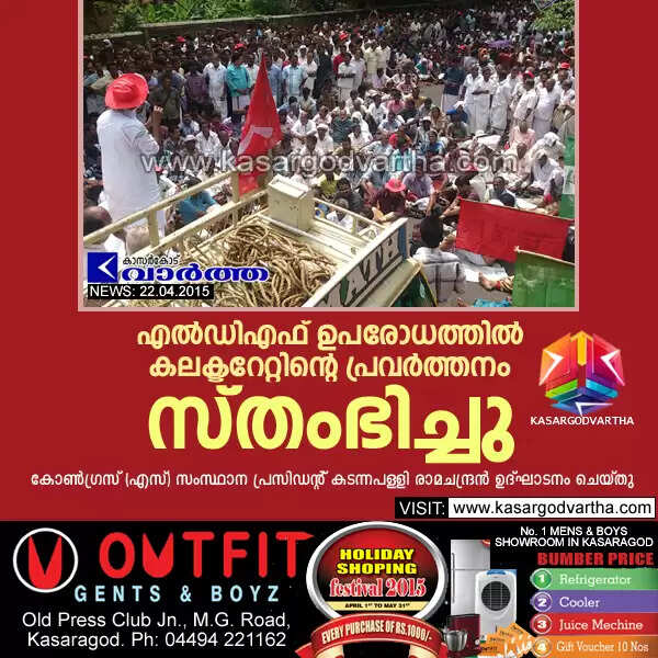Keywords : Kasaragod, LDF, Protest, Collectorate, Kerala, UDF, MLA, KM Mani, LDF protest before collectorate.