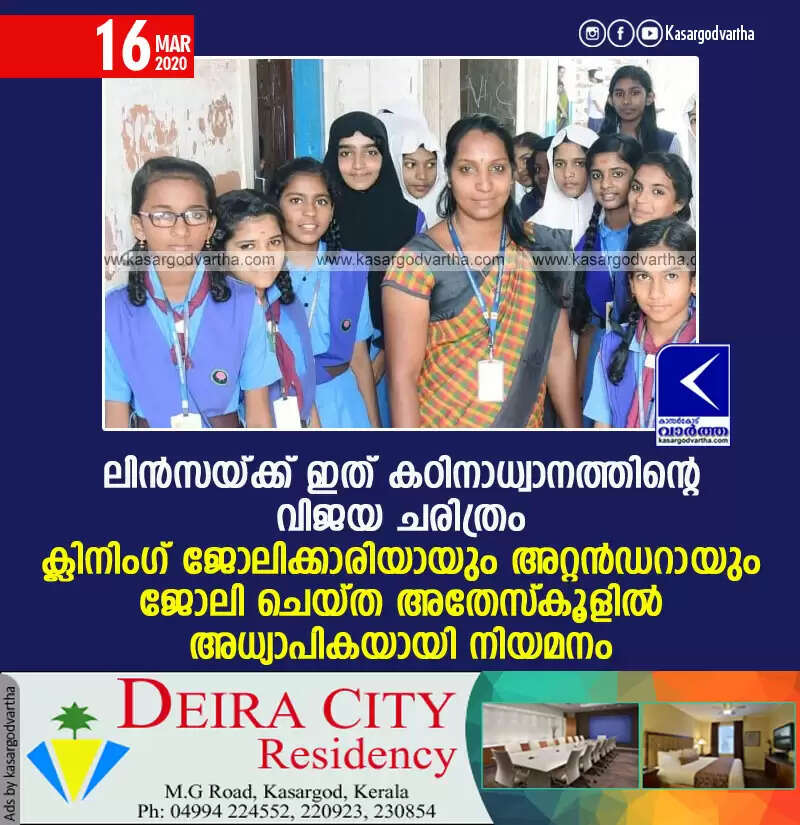 ലിന്സയ്ക്ക് ഇത് കഠിനാധ്വാനത്തിന്റെ വിജയ ചരിത്രം; ക്ലിനിംഗ് ജോലിക്കാരിയായും അറ്റന്ഡറായും ജോലി ചെയ്ത അതേസ്കൂളില് അധ്യാപികയായി നിയമനം