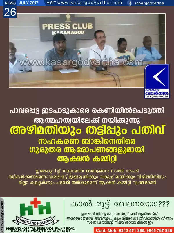 Keywords: Kasaragod, Suicide, Co-Operation Bank, Action Committee, Bank Loans, Loan issue; Action Committee against co-operative bank.