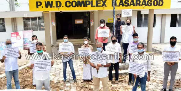 Keywords: Kasaragod, Kerala, News, PWD-office, COVID-19, Lock down: contractors youth wing protested