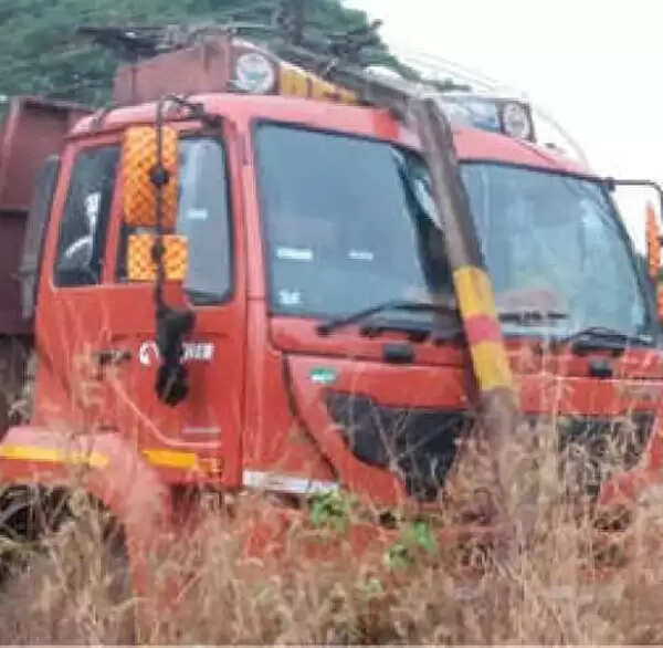 ടോറസ് ലോറി നിയന്ത്രണംവിട്ട് വൈദ്യുതി തൂണിലിടിച്ച ശേഷം കുഴിയിലേക്ക് മറിഞ്ഞു