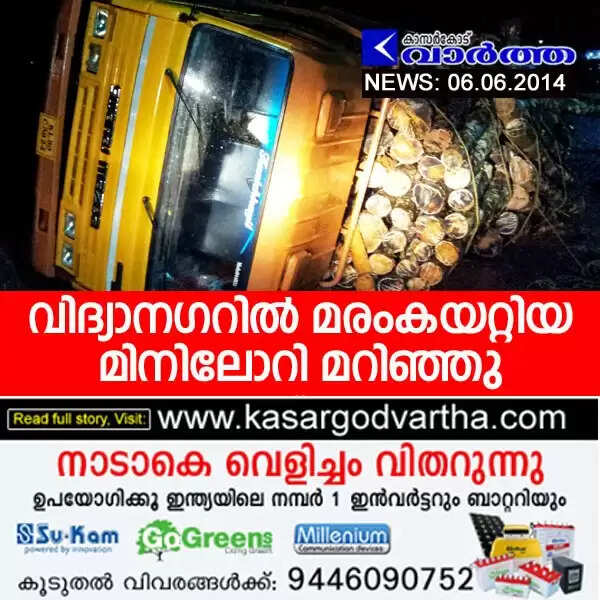 വിദ്യാനഗറില് മരംകയറ്റിയ മിനിലോറി മറിഞ്ഞു