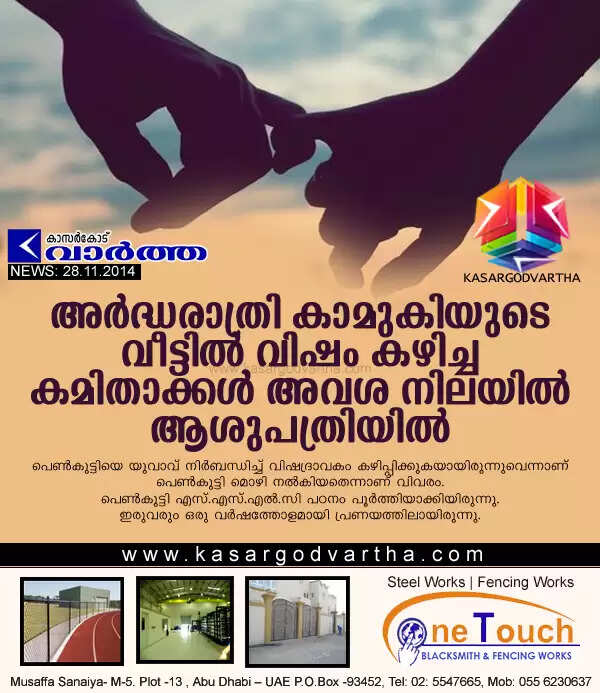 Keywords: Kasaragod, Kerala, Love, hospital, House, General-hospital, Poison, Student, SSLC, lovers hospitalized after consuming poison.