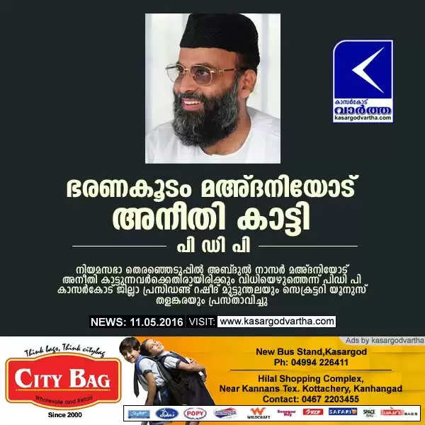 Keywords : Kasaragod, PDP, Election 2016, Kasaragod, Trikaripur, Abdul Nasar Madani.