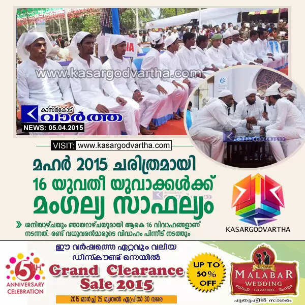 മഹര് 2015 ചരിത്രമായി; 16 യുവതീ യുവാക്കള്ക്ക് മംഗല്യ സാഫല്യം