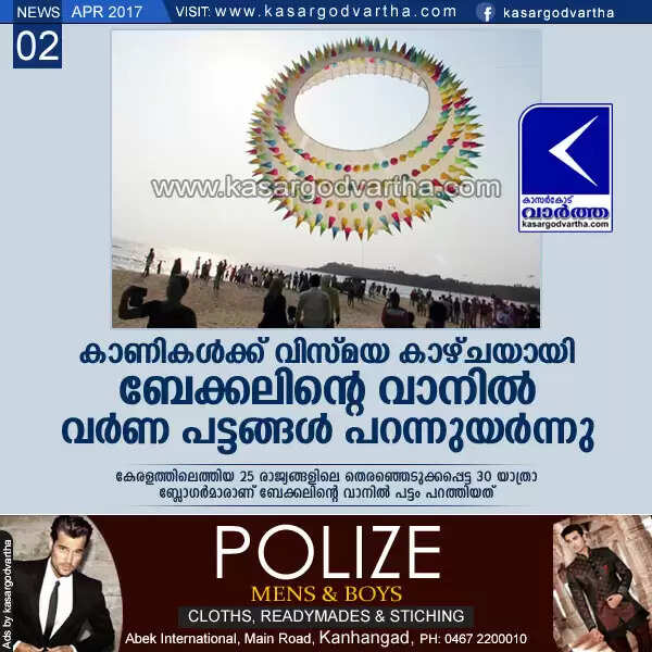 കാണികള്ക്ക് വിസ്മയ കാഴ്ചയായി ബേക്കലിന്റെ വാനില് വര്ണ പട്ടങ്ങള് പറന്നുയര്ന്നു