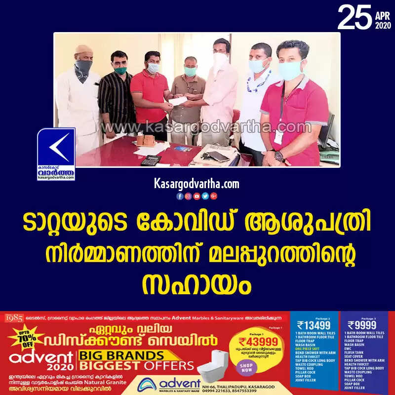 Keywords: Kasaragod, Malappuram, Kerala, News, COVID-19, Hospital, Helping hands, Malappuram's help for Tata Covid hospial