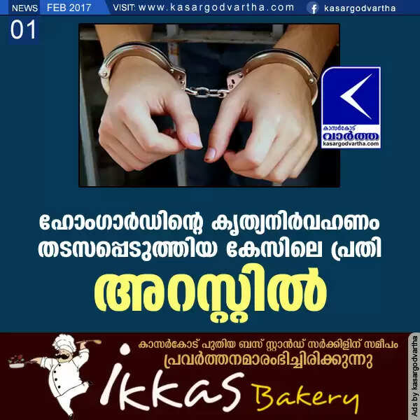 ഹോംഗാര്ഡിന്റെ കൃത്യനിര്വഹണം തടസപ്പെടുത്തിയ കേസിലെ പ്രതി അറസ്റ്റില്