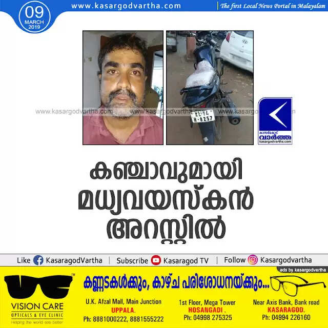 Keywords:  Kasaragod, Kerala, news, arrest, Excise, Ganja, Kumbala, Man arrested with Ganja