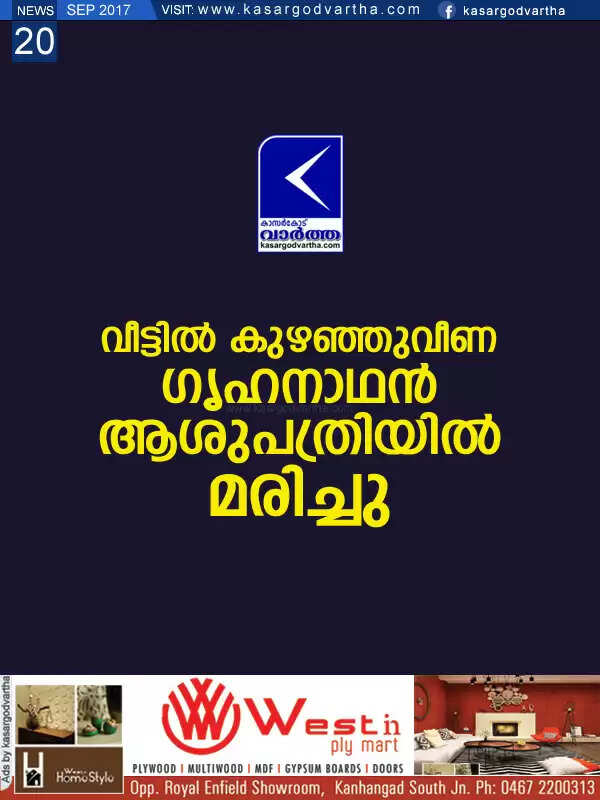 വീട്ടില് കുഴഞ്ഞുവീണ ഗൃഹനാഥന് ആശുപത്രിയില് മരിച്ചു