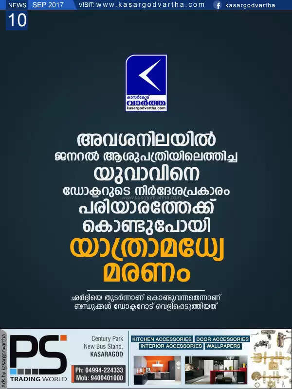 Keywords:  Kasaragod, Kerala, news, Death, hospital, General-hospital, Man dies while shifting Pariyaram medical college