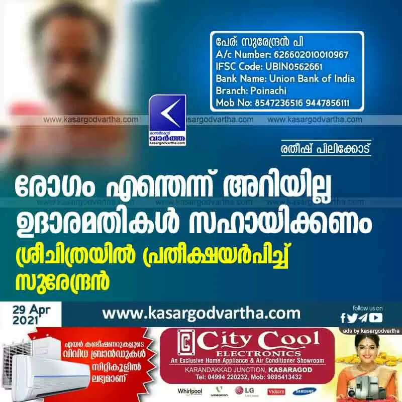 Keywords: Kasaragod, Chattanchal, Treatment, Patient's, Health, Hospital, Poinachi, News, Kerala, Man seeks financial Support for treatment.