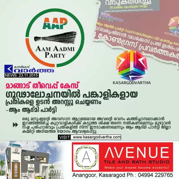 Keywords : Mangad, Fire, Case, Police, Complaint, Investigation, Kasaragod, Aam Aadmi Party.