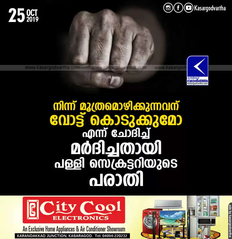 നിന്ന് മൂത്രമൊഴിക്കുന്നവന് വോട്ട് കൊടുക്കുമോ എന്ന് ചോദിച്ച് മര്‍ദിച്ചതായി പള്ളി സെക്രട്ടറിയുടെ പരാതി
