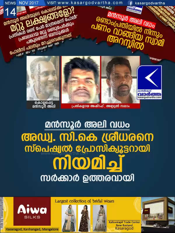 Keywords: Kasaragod, Kerala, news, court, Murder-case, Accuse, arrest, Mansoor Ali murder; Adv. C.K Sreedharan appointed as Public prosecutor