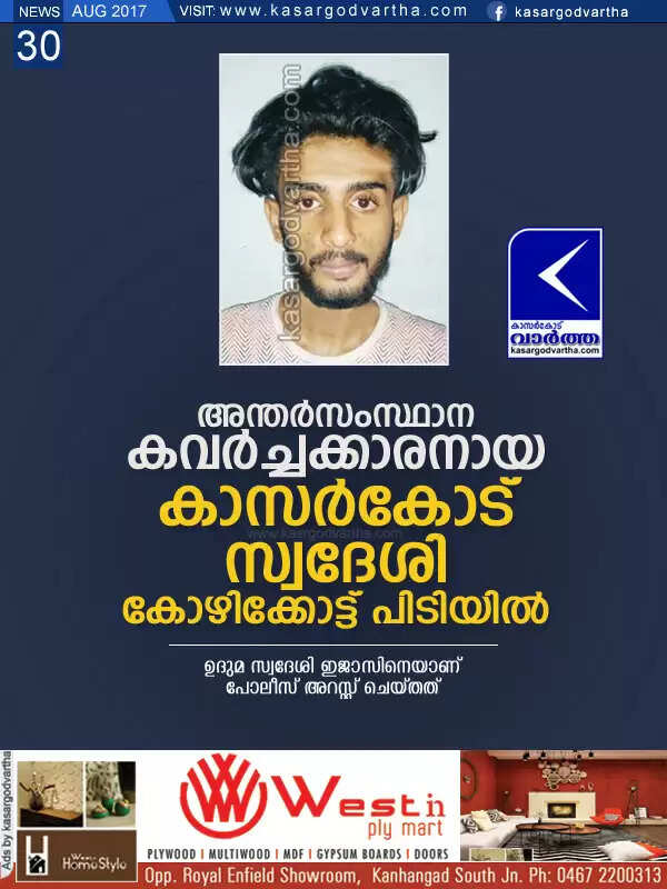 അന്തര്സംസ്ഥാന കവര്ച്ചക്കാരനായ കാസര്കോട് സ്വദേശി കോഴിക്കോട്ട് പിടിയില്