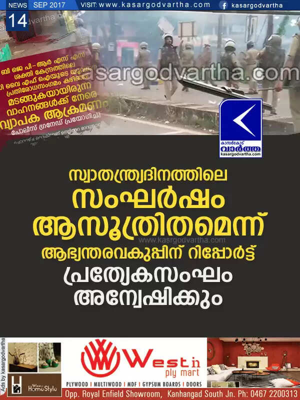 സ്വാതന്ത്ര്യദിനത്തിലെ സംഘര്ഷം ആസൂത്രിതമെന്ന് ആഭ്യന്തരവകുപ്പിന് റിപ്പോര്ട്ട്; പ്രത്യേകസംഘം അന്വേഷിക്കും