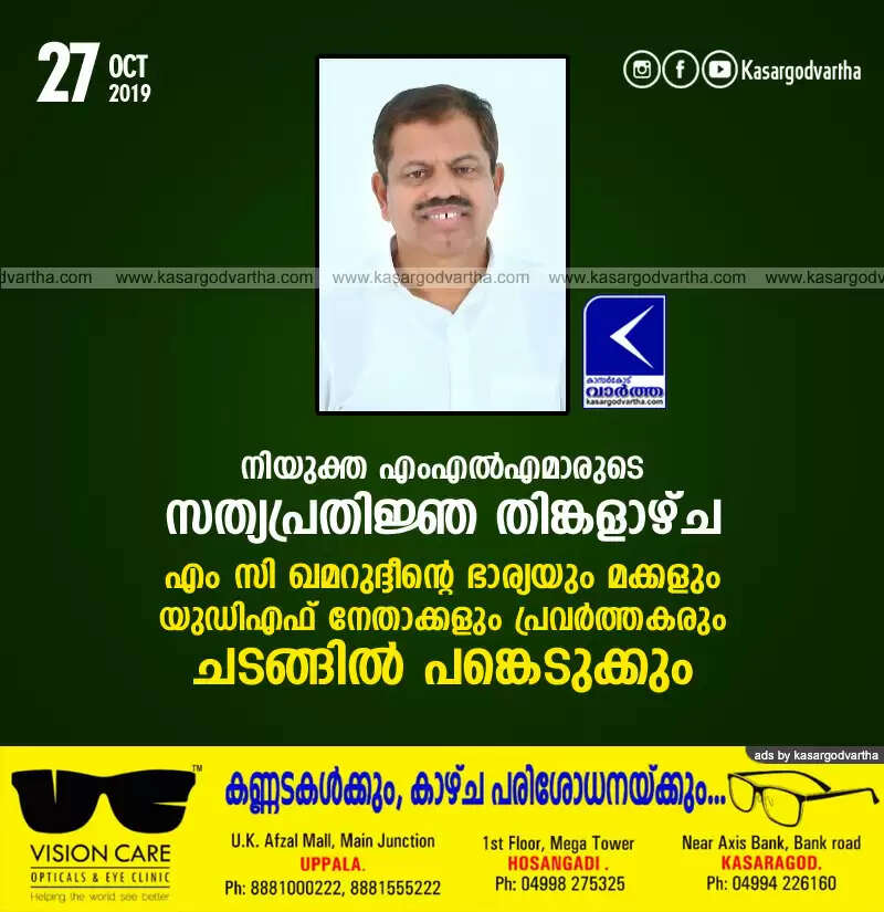 നിയുക്ത എംഎല്എമാരുടെ സത്യപ്രതിജ്ഞ തിങ്കളാഴ്ച; എം സി ഖമറുദ്ദീന്റെ ഭാര്യയും മക്കളും യുഡിഎഫ് നേതാക്കളും പ്രവര്ത്തകരും ചടങ്ങില് പങ്കെടുക്കും