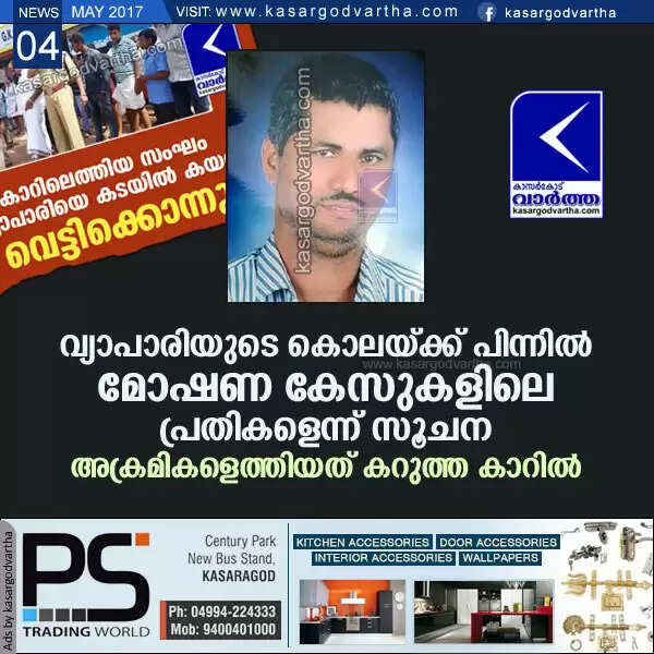 വ്യാപാരിയുടെ കൊലയ്ക്ക് പിന്നില് മോഷണ കേസുകളിലെ പ്രതികളെന്ന് സൂചന; അക്രമികളെത്തിയത് കറുത്ത കാറില്