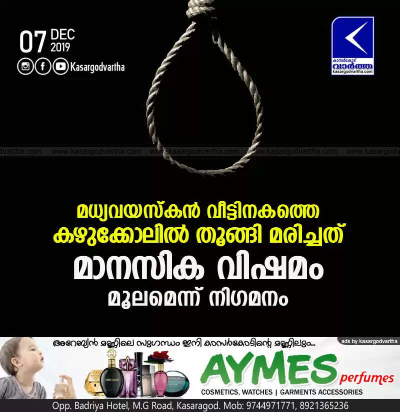 < !- START disable copy paste --> Keywords: Kanhangad, News, Kerala, Kasaragod, Death, Police, Case, Middle age man found dead hanged