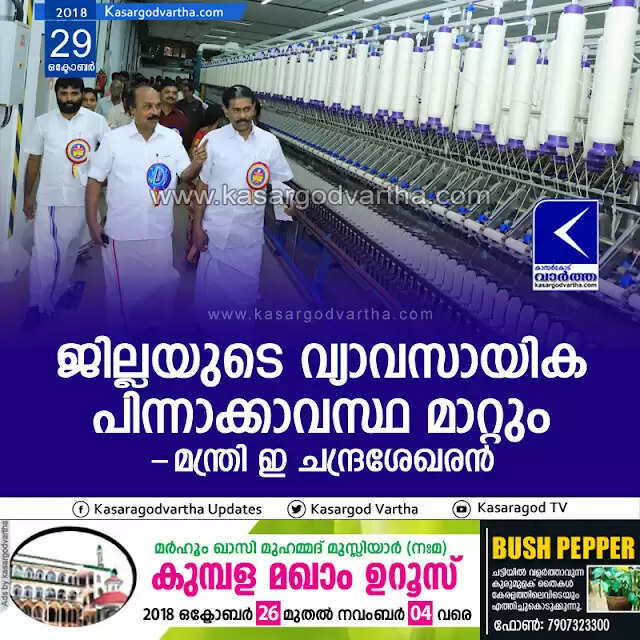 Keywords: E Chandrasekharan, Udma, Udma-textiles-mill, Kasaragod, News, Minister E Chandrasekharan on industrial development