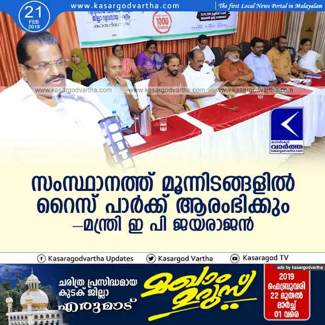 സംസ്ഥാനത്ത് മൂന്നിടങ്ങളില് റൈസ് പാര്ക്ക് ആരംഭിക്കും: മന്ത്രി ഇ പി ജയരാജന്