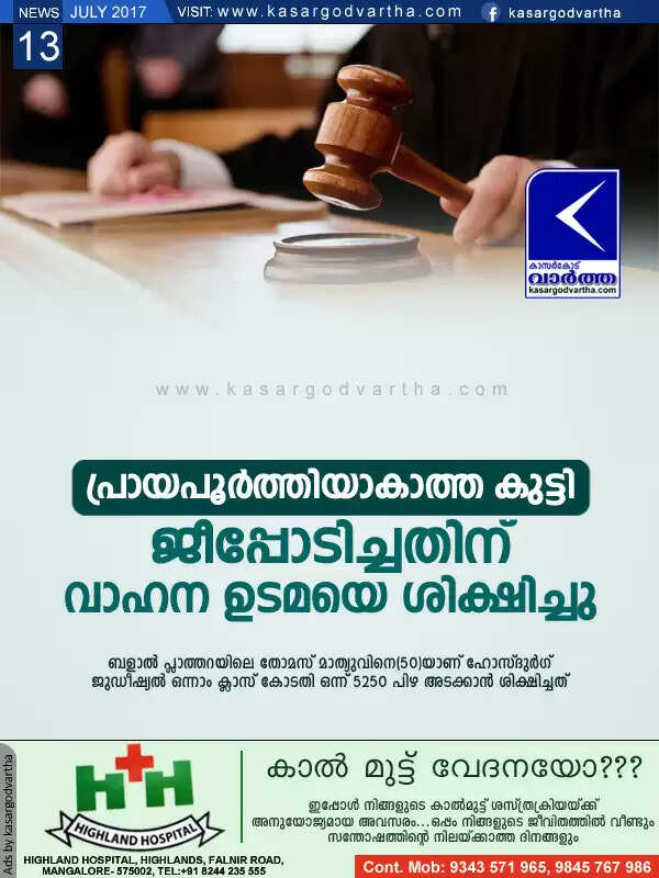 Keywords : Kanhangad, Court, Fine, Jeep, Kasaragod, Minor Driving, Thomas Mathew.