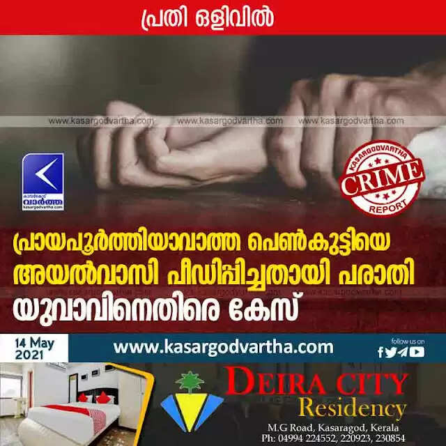 പ്രായപൂർത്തിയാവാത്ത പെൺകുട്ടിയെ അയൽവാസി പീഡിപ്പിച്ചതായി പരാതി; യുവാവിനെതിരെ കേസ്