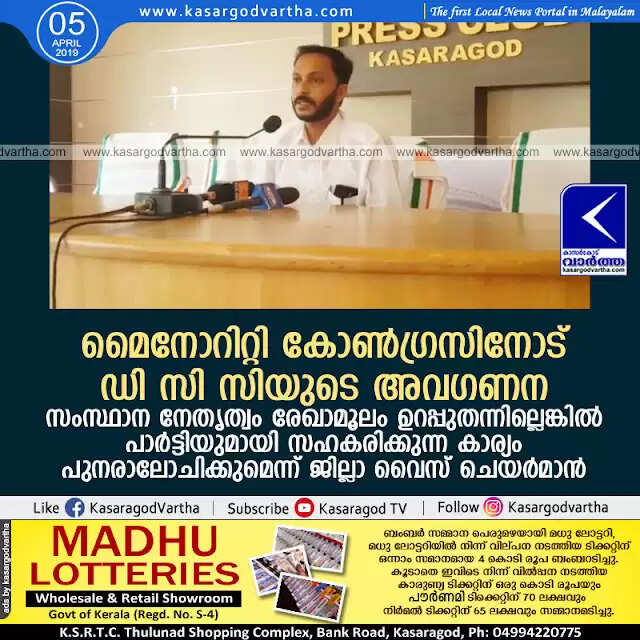 Keywords: Minority Congress Vice chairman against against DCC, DCC, Press meet, Kasaragod, news, Habeeb Bendichal.