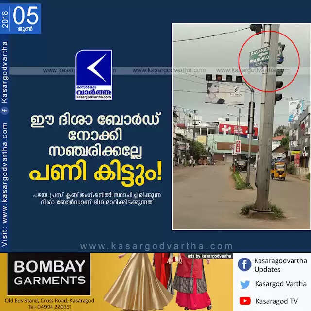 Keywords: Kasaragod, Kerala, news, Mistakes in Direction Sign board, Kasaragod Press Club Junction,