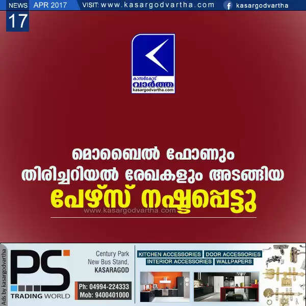 Keywords: Kasaragod, Cash, Police, Complaint, Investigation, Missing, Police station, Bus Stand, Purse, Mobile Phone, Mobilephone and purse lost.