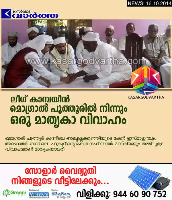 Keywords : Kasaragod, Mogral Puthur, Marriage, Muslim-league, Campaign, Ismail, Model marriage from Mogral Puthur.